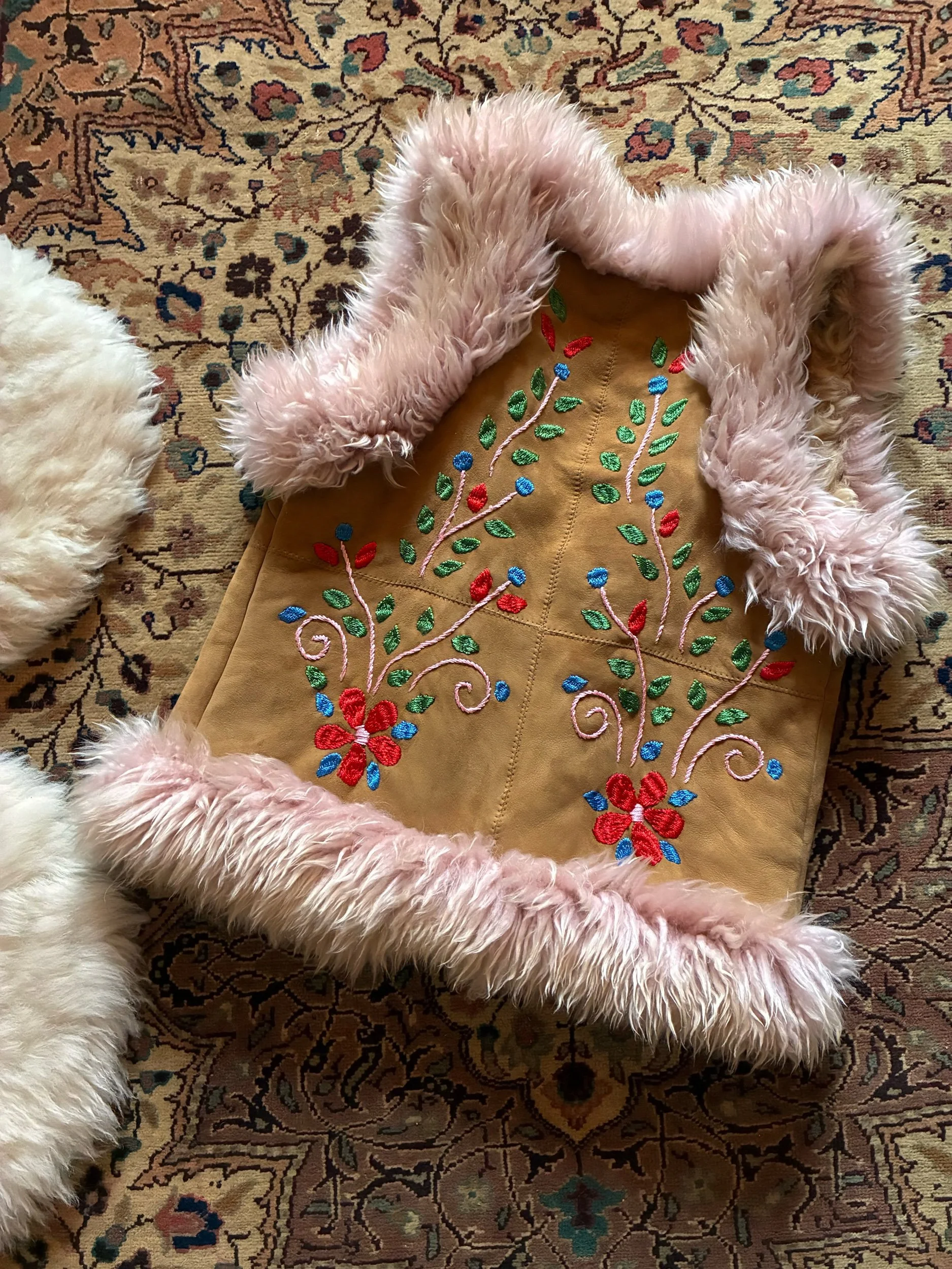 Good overall vintage condition. Signs of imperfections. A small area at the front of the coat is missing a patch of fur) - see pictures. Fur and suede have signs of wear and imperfections. No major damage.