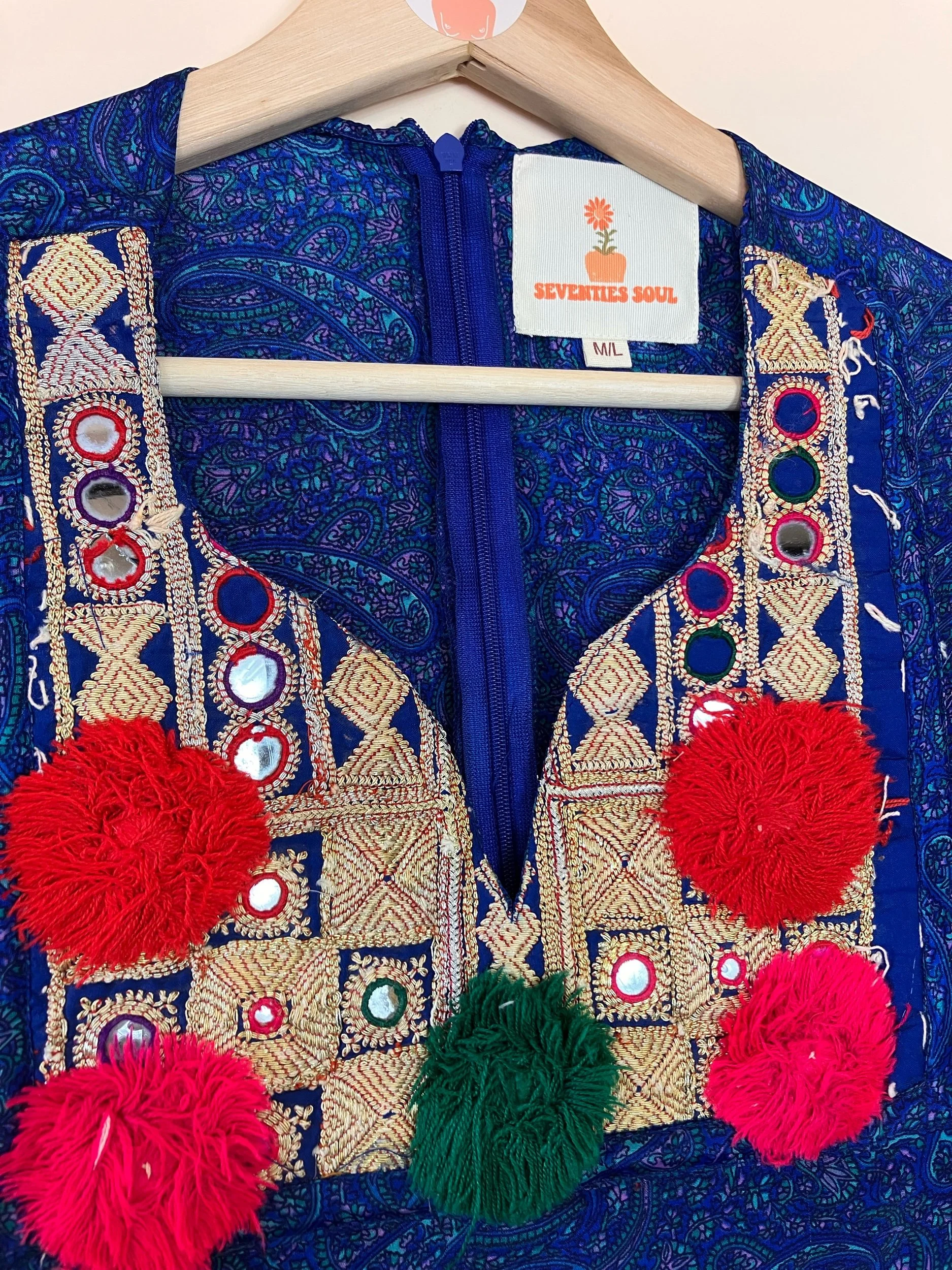 Please note: due to nature of the pre-loved textiles used to make these dresses it’s possible some pieces may display small signs of wear or imperfections.